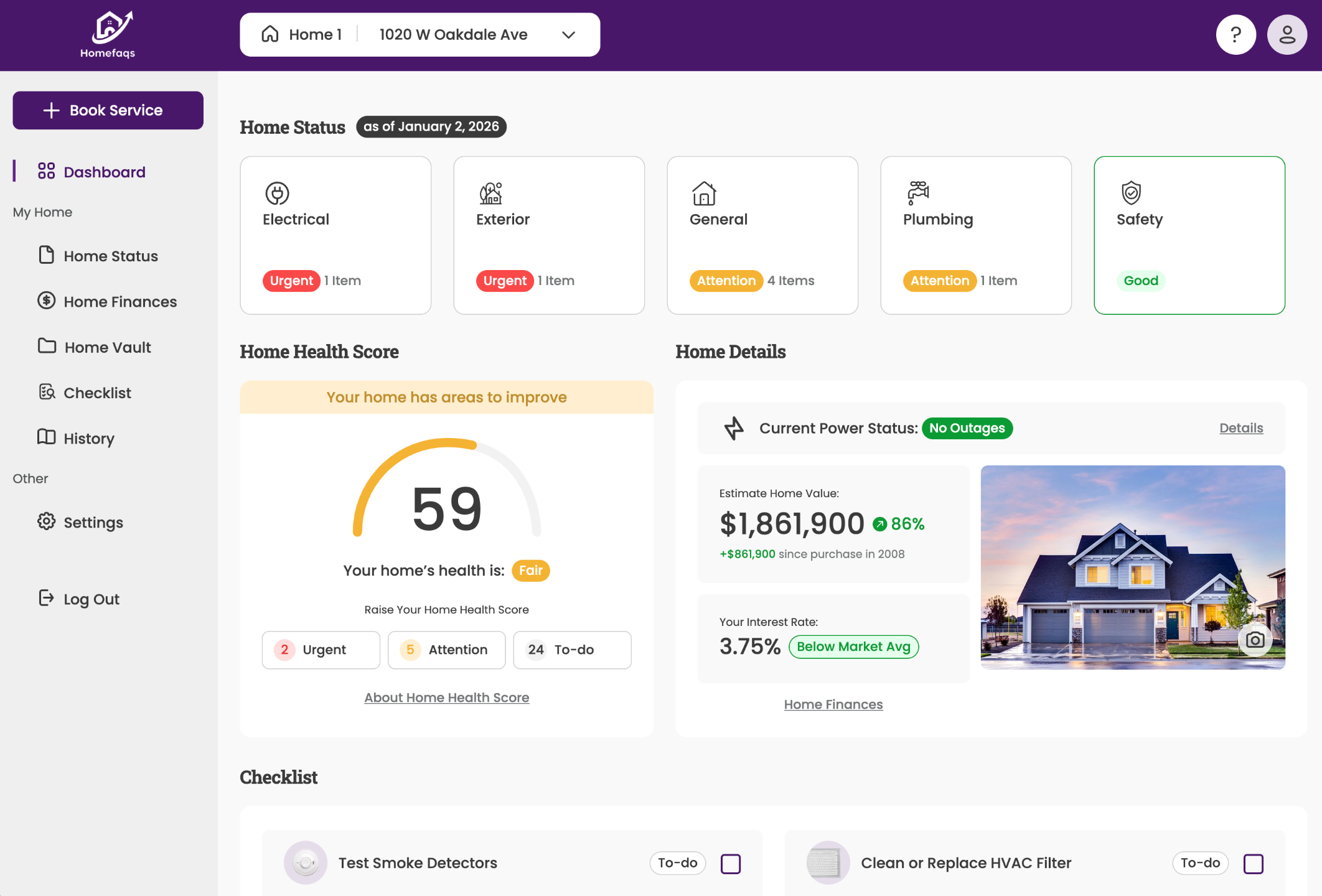 - A Home Health Score & Dashboard for tracking maintenance on YOUR home.